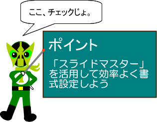 そこで、使って欲しいのが「スライドマスター」という機能。